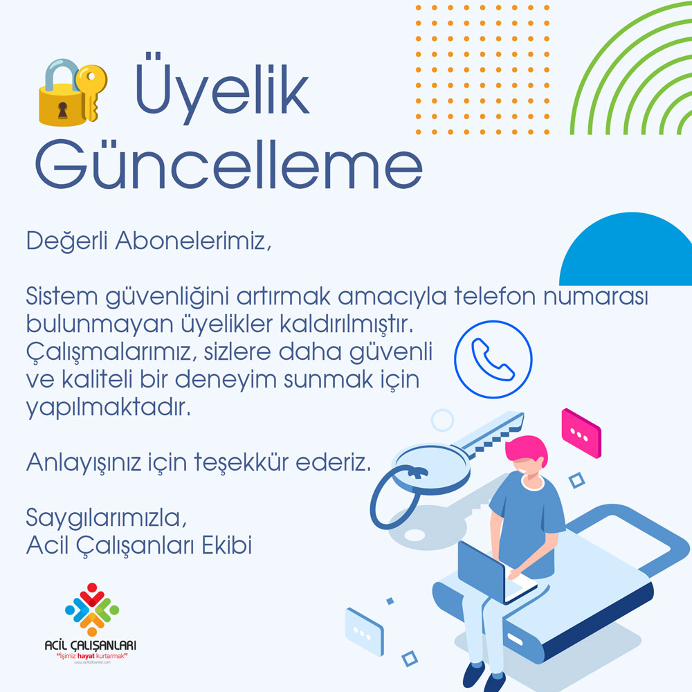 Sistem güvenliğini artırmak amacıyla telefon numarası bulunmayan üyelikler kaldırılmıştır.