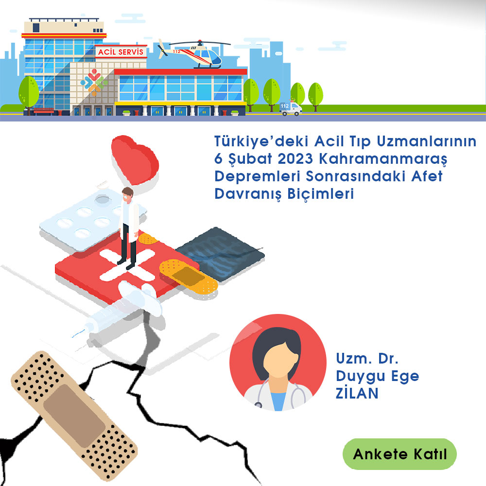 Bu anket Acil Tıp Uzmanlarının kişisel hayatlarındaki depreme hazırlık tutumlarını değerlendirmek üzere hazırlanmıştır. Araştırmanın güvenirliği bakımından verdiğiniz cevaplar çok önemlidir. Sorularla ilgili gerçek düşüncelerinizi belirtmeniz ve soruların tümünü cevaplamanız araştırma sonuçlarının doğruluğu için çok önemlidir. Bu nedenle anket formunda kişisel bilgiler sorulmamaktadır.