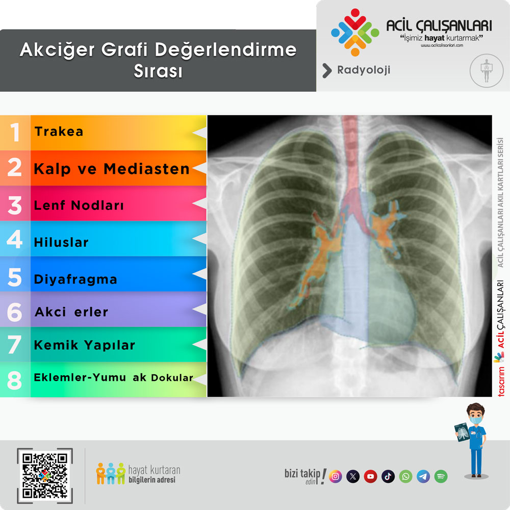 Akciğer grafisini sistematik değerlendirirken şu başlıklar altında bakıyoruz: