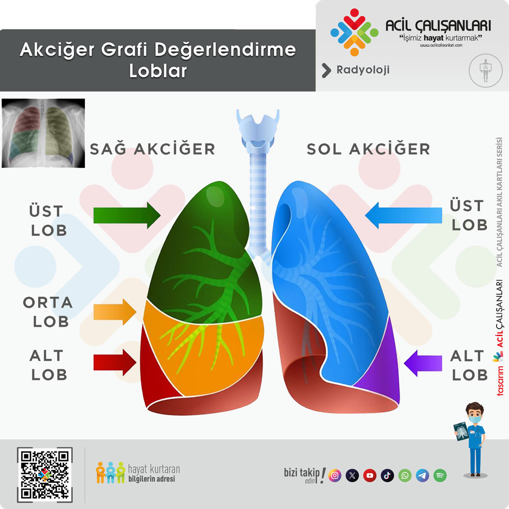 Aynı şekilde sol tarafta da üst zon çoğunlukla sol üst loba, orta zon hem üst hem alt loba, alt zon ise çoğunlukla alt loba karşılık gelir. Bu yüzden grafi yorumlanırken “Sağ alt zon infiltrasyonu” demek, kesin olarak “sağ alt lob” demek değildir; ama alt lob patolojisini düşündürür.