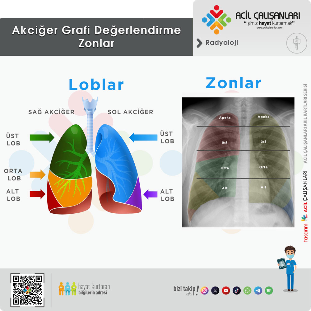 Akciğerler anatomik olarak loblara, radyolojik olarak ise daha pratik kullanım için zonlara ayrılarak değerlendirilir.