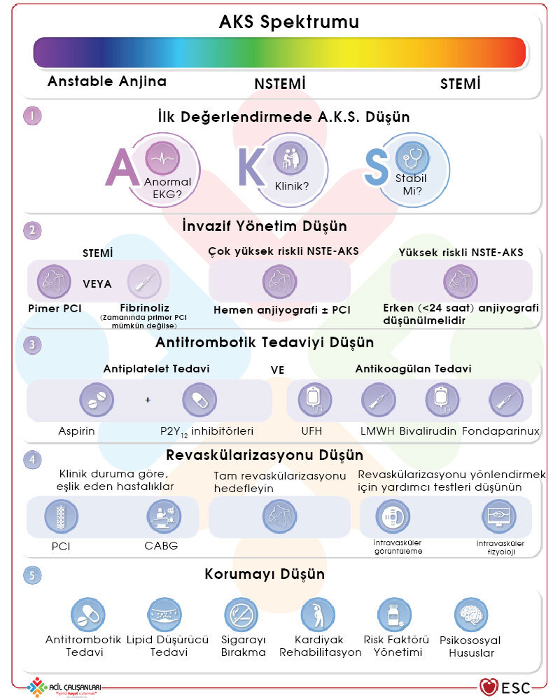 AKS: Akut koroner sendrom; CABG: Koroner arter bypass ameliyatı, EKG: Elektrokardiyogram; IRA: Enfarktüsle ilişkili arter, PCI: Perkütan koroner girişim, STE-ACS: ST segment yükselmeli akut koroner sendrom.