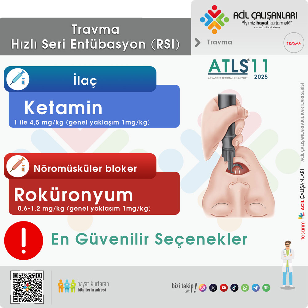 | Ketamin (RSI) | 0.5–2 mg/kg | Hipotansiyonu ve şoku kötüleştirebilir |