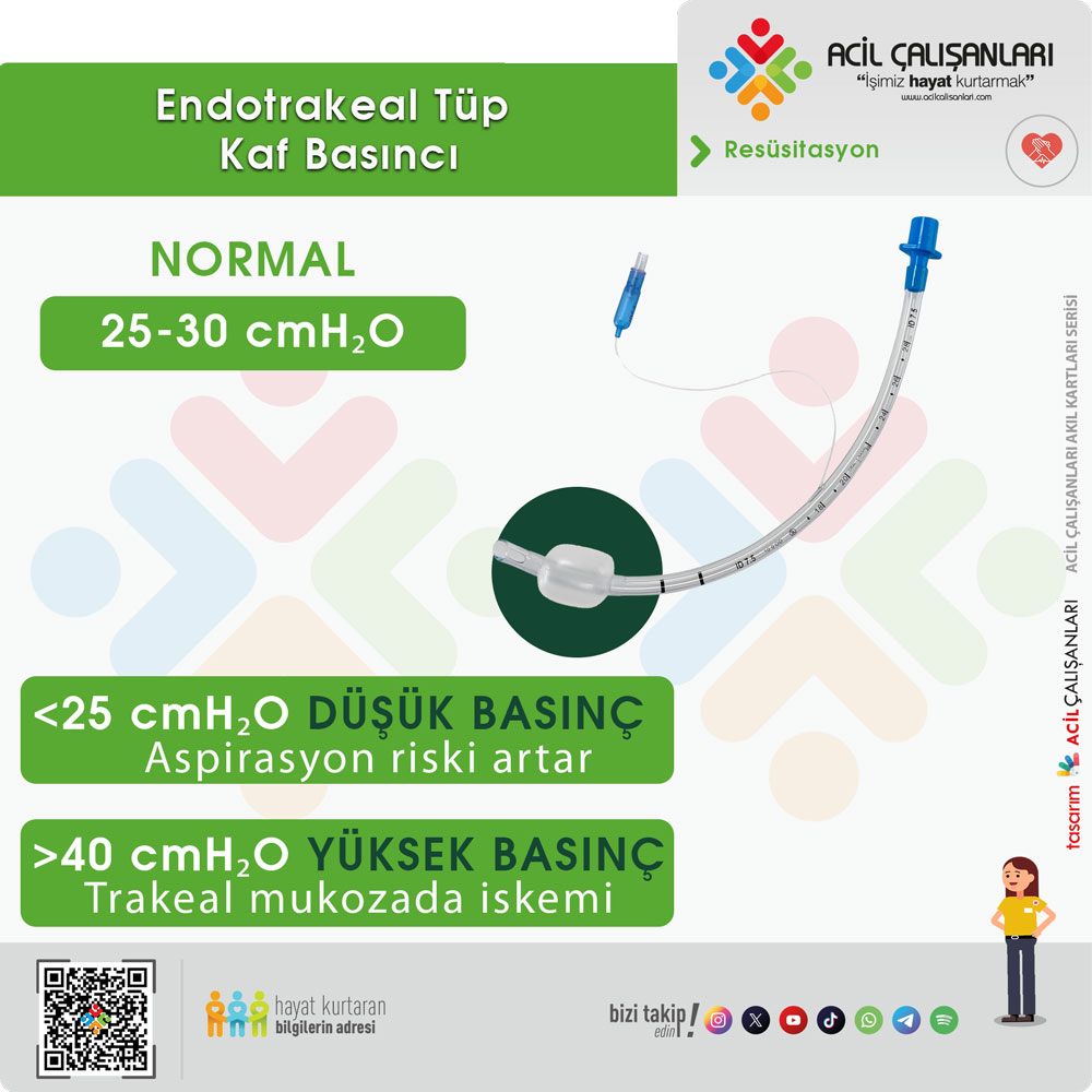Endotrakeal tüp kaf basıncının uygun yönetimi, trakeal dokuların korunması, etkili ventilasyon ve aspirasyonun önlenmesi açısından hayati öneme sahiptir. Acil durumlarda basınç ölçümü manometre ile yapılmalı, bu mümkün değilse uygun miktarda hava verilerek basınç ayarı dikkatlice yapılmalıdır.