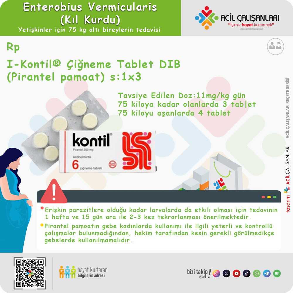 Gebelikte Enterobius enfeksiyonunun tedavisi, belirgin semptomları olan hastalara ayrılmalıdır. Hamile hastalarda diğer ilaçlara göre pirantel pamoat tercih edilir.
