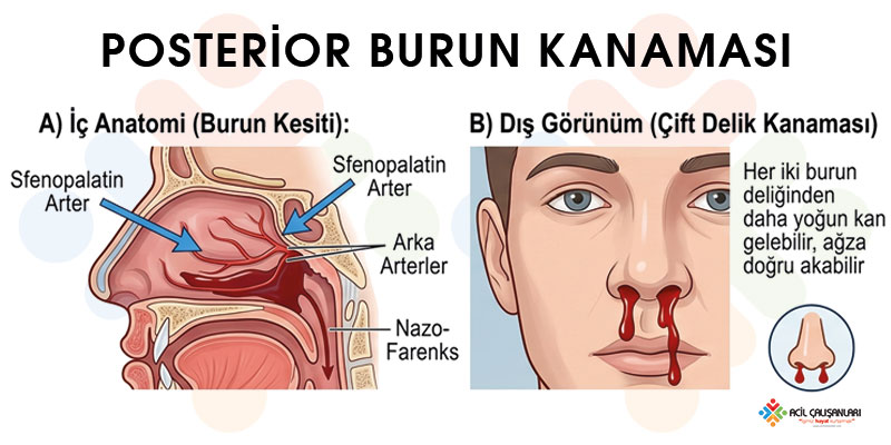 Anterior tampona rağmen durmayan kanamalarda posterior kanama düşünülür. KBB konsültasyonu istenmelidir. Acil durumda Foley idrar sondası kullanılabilir. Sonda posterior nazofarinkste şişirilerek (5-10 ml) geriye çekilir ve koana kapatılır. Önüne anterior tampon desteklenir.
