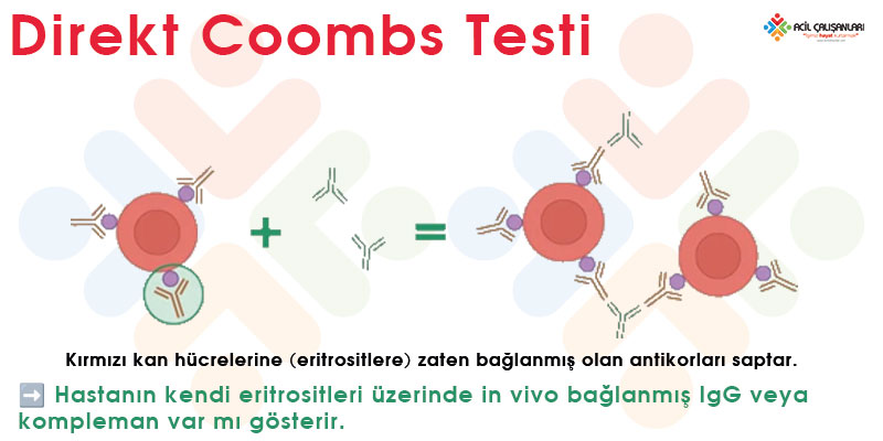 Hastanın eritrositlerinin üzerinde zaten bağlanmış olan IgG antikorları veya C3 komplemanı var mı, onu gösterir.