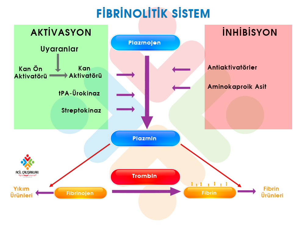 - t-PA (tissue plasminogen activator). Plazminojenin plazmine dönüşünü sağlar. Plazmin, fibrini (pıhtıyı) yıkan enzimdir.