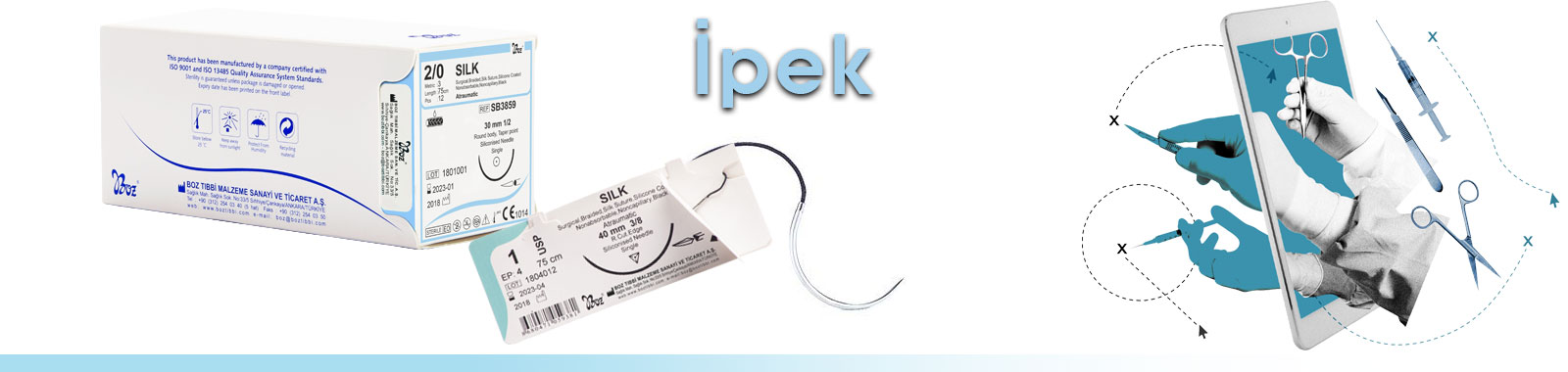 İpek Silk Ⓡ) fibroin adı verilen organik proteinden elde edilmiş, absorbe olmayan, steril cerrahi bir ipliktir. Bombycidae ailesinin evcilleştirilmiş türü olan Bombyx mori (B.mori) ipek böceğinden elde edilir. İpek iplikler doğal yağ ve yapışkanlarından temizlenmek için işleme tabi tutulur. İpek siyah renkte ve silikon ile kaplıdır.