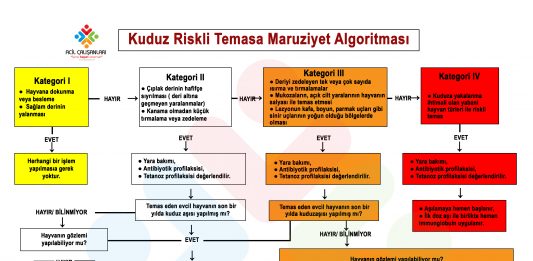 Sağlık bakanlığı tarafından 2019 yılının Mart ayında Kuduz Profilaksi Rehberi yenilendi. Rehberde yaklaşımın daha kolay ve anlaşılır olması için yaklaşım algoritması yayınlandı. Kuduz Riskli Temasa Mazuriyet Algoritmasını sizlerle paylaşıyoruz. Tablonun çiziminde emeği geçen Enes abimize şükranlarımızı sunarız. Kuduz Saha Rehberi 2019 – Neler değişti?