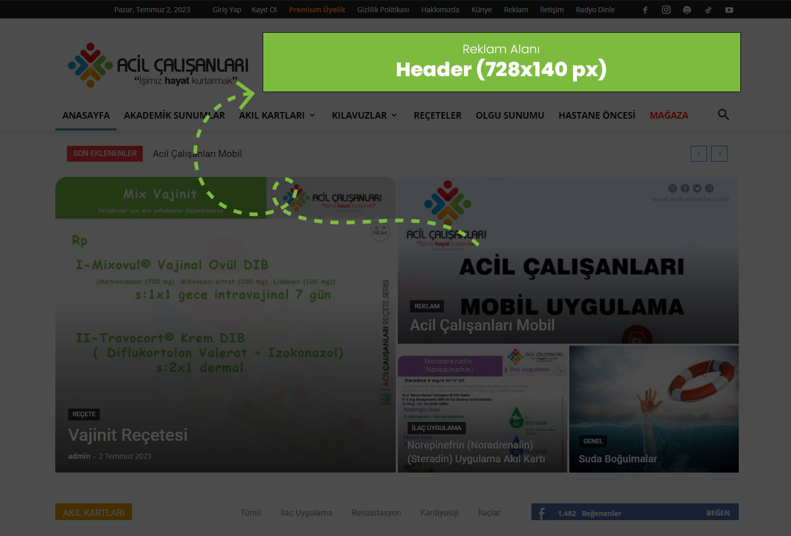 Header (728×140 px): Anasayfanın açıldığı zaman en üst alanında yer alır.