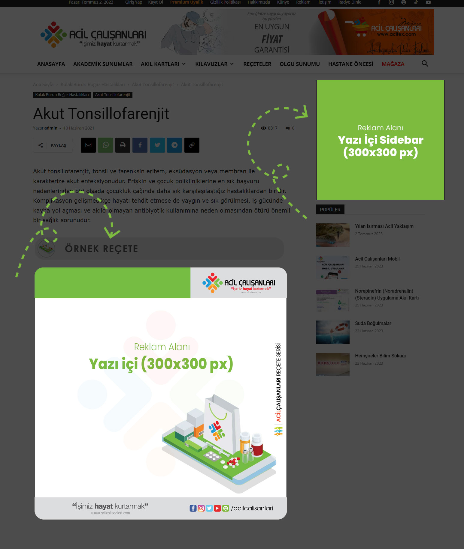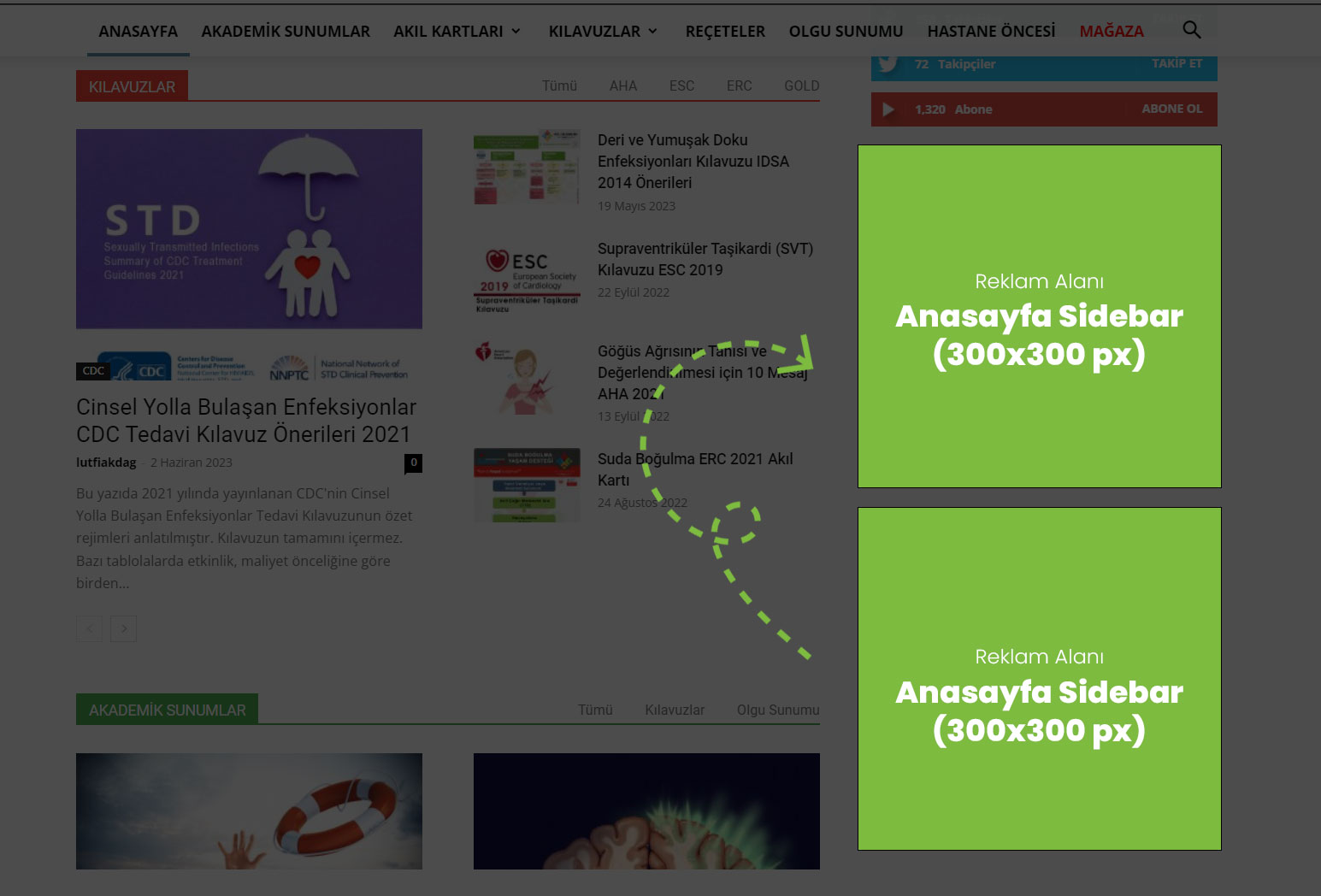 Yazı içi Sidebar (300×300 px): yazı sayfalarının sağ alanında yer alır.