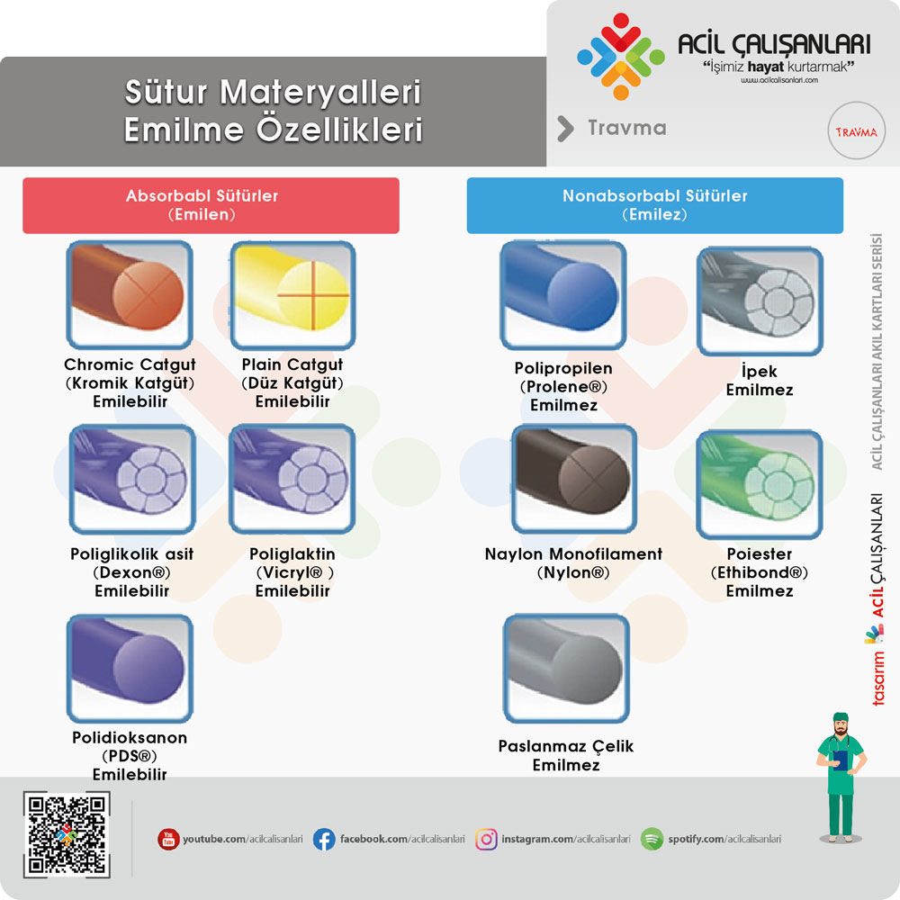 Emilebilen Sütürler | Emilemeyen Sütürler | |