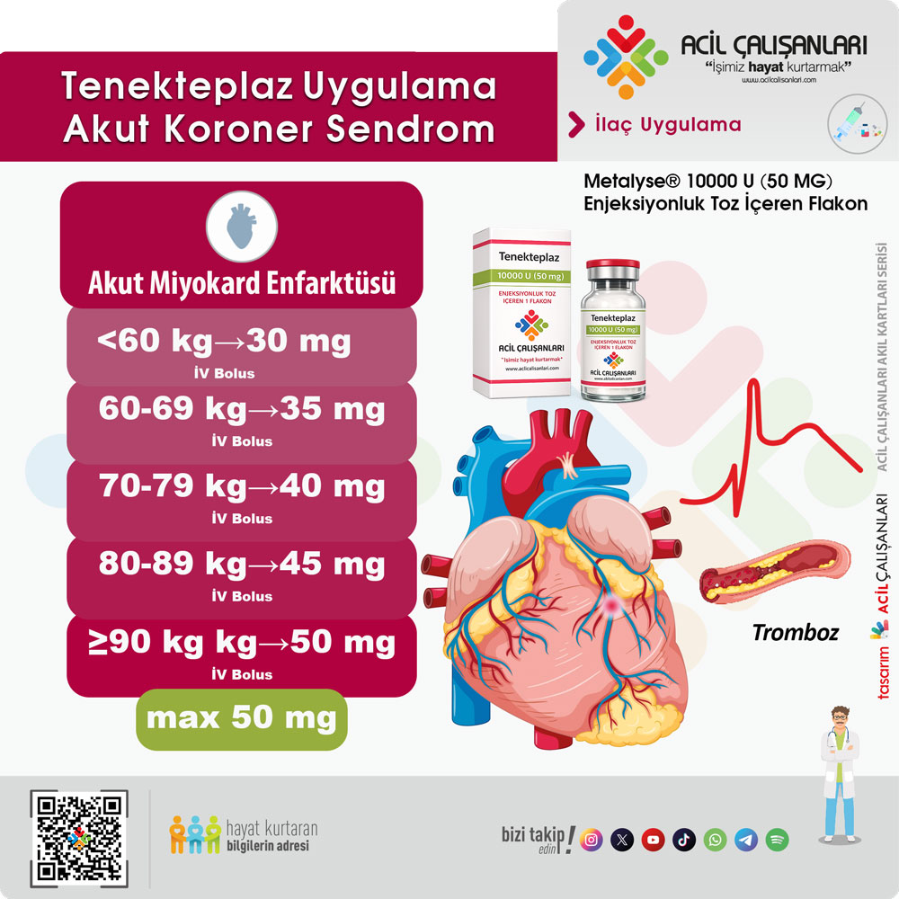 Tenekteplaz, European Society of Cardiology 2023 kılavuzlarına göre, primer PCI’nın 120 dakika içinde yapılamadığı STEMI hastalarında öncelikli tercih edilen fibrinolitik ajandır. En önemli avantajı, tek doz IV bolus şeklinde uygulanabilmesi ve hızlı reperfüzyon sağlamasıdır.