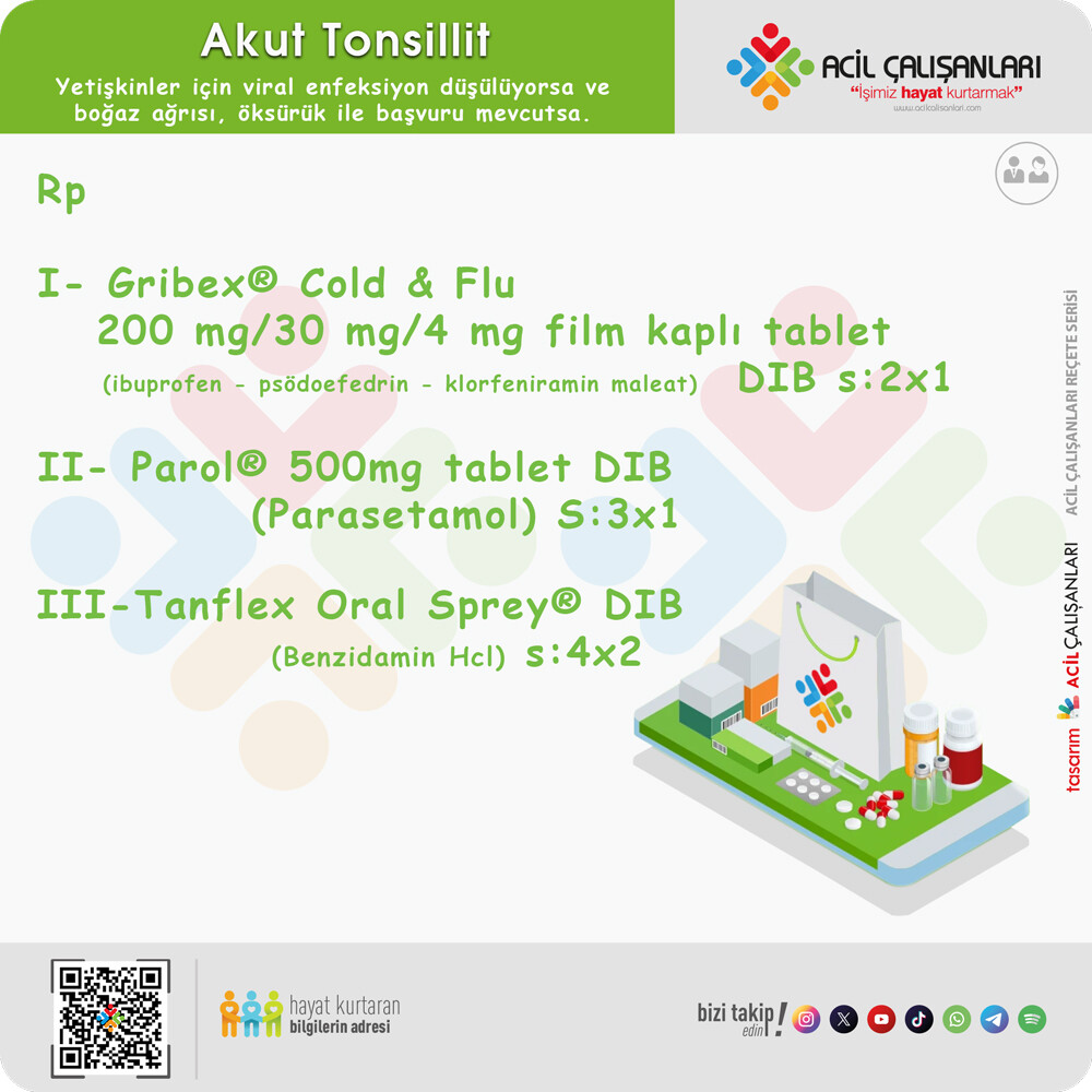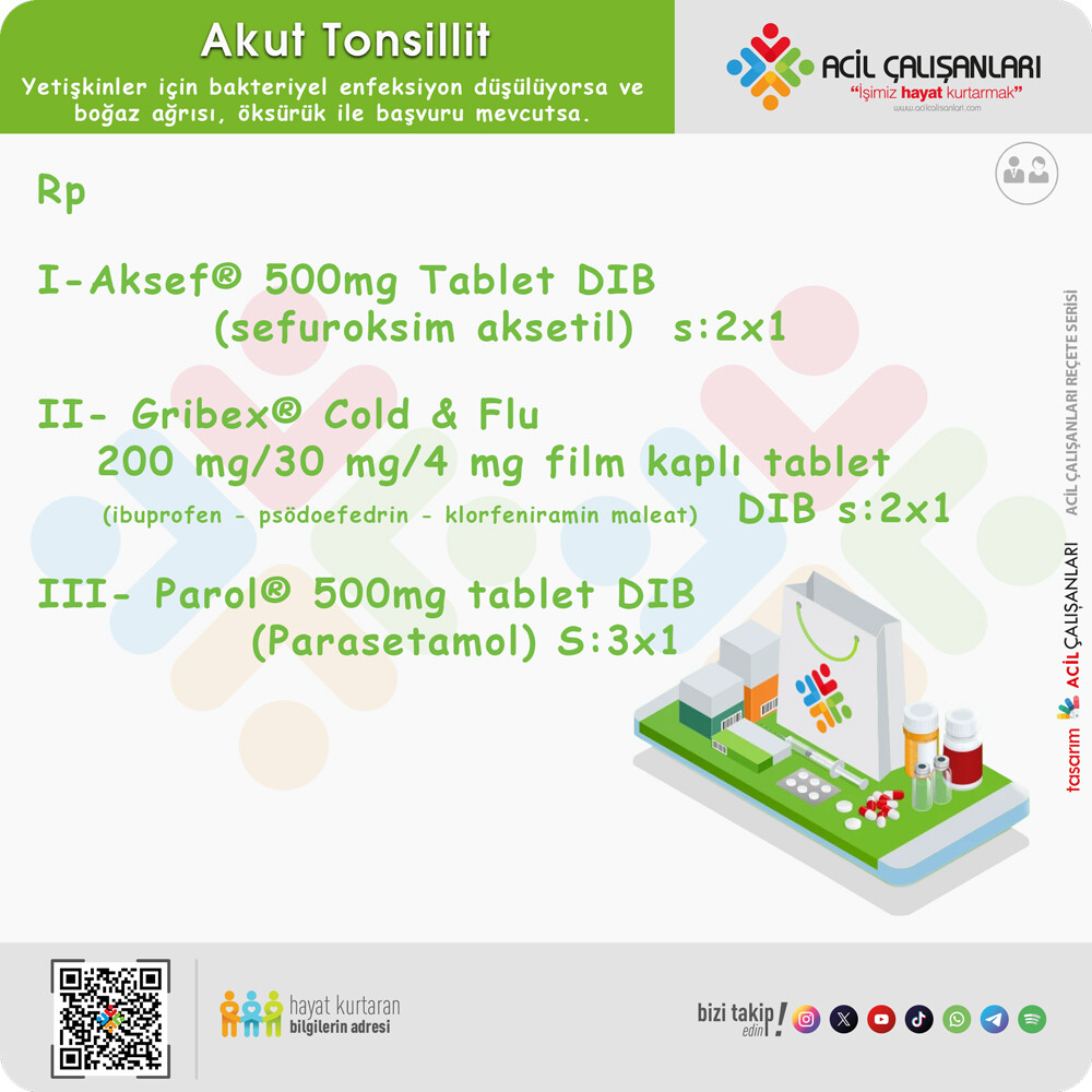 Akut tonsillit, halk arasında Bademcik iltihabı olarak bilinen tonsillerin eritem, eksüdasyon veya membran ile karakterize akut enfeksiyonudur. Acilde ayaktan tedavi ziyaretlerinin yaklaşık %1.3’ünü oluştururken erişkin ve çocuk polikliniklerine en sık başvuru nedenlerinden biridir. Ağırlıklı olarak etiyolojiisinde viral veya bakteriyel patojenler sorumludur. Komplikasyon gelişmedikçe hayatı tehdit etmese de yaygın ve sık görülmesi, iş gücünde kayba yol açması ve akılcı olmayan antibiyotik kullanımına neden olmasından ötürü önemli bir sağlık sorunudur. Akut tonsillit klinik bir tanıdır. Bakteriyel ve viral nedenler arasında ayrım yapmak zor olabilir; ancak bu, antibiyotiklerin aşırı kullanımını önlemek için çok önemlidir.