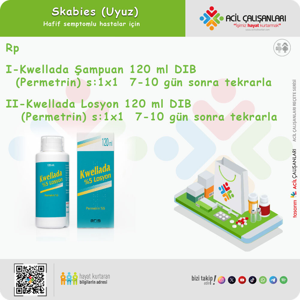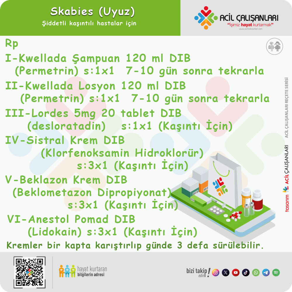 - Skabiyes akarı ve salgılarına karşı gelişen alerjik yanıt nedeniyle kaşıntının tedavi sonrası devam edebileceği konusunda hastalar uyarılmalıdır.