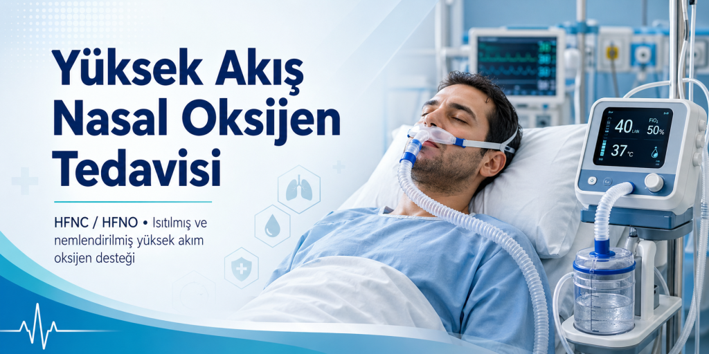 Yüksek akış nazal oksijen tedavisi; İngilizce literatürde genellikle high-flow nasal cannula (HFNC) veya high-flow nasal oxygen (HFNO) olarak adlandırılan, ısıtılmış ve nemlendirilmiş oksijen-hava karışımını geniş çaplı nazal kanüller aracılığıyla yüksek akım hızlarında hastaya ulaştıran noninvaziv bir solunum desteği yöntemidir. Geleneksel düşük akımlı nazal kanül çoğu zaman 4–6 L/dk akımın üzerine çıktığında mukozal kuruluk, irritasyon ve FiO₂ kontrolünde yetersizlik gibi sınırlılıklar gösterirken; HFNC sistemleri teorik olarak 60 L/dk’ya kadar akım ve %21–100 arası FiO₂ sağlayabilir. Bu nedenle tedavinin temel farkı yalnızca “daha fazla oksijen vermek” değil, hastanın inspiratuvar akım ihtiyacına daha yakın bir akım sunarak oksijen konsantrasyonunu daha kontrollü ulaştırmaktır.